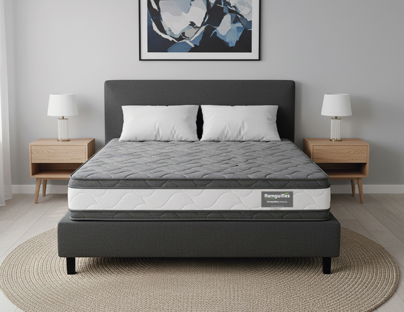 Colchón compuesto por espuma flexible de poliuretano Poliflex en cada cara y un núcleo de compact foam de alta densidad, diseñados para brindar un colchón firme y confortable. Ideal para personas con problemas de columna que requieren una superficie firme para un descanso reparador.